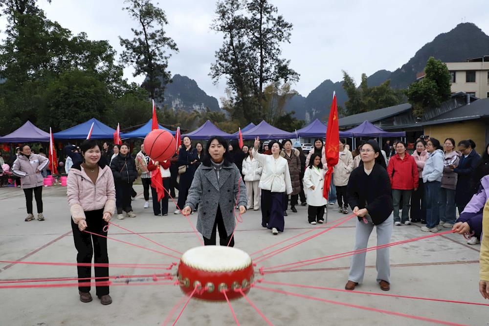 趣味运动环节正式拉开帷幕。活动现场充满欢声笑语,女教职工们分成若干小组,积极参与到同心鼓比赛中。她们手持同心鼓,齐心协力将球颠起。比赛现场欢声笑语不断,气氛热烈而紧张。大家在比赛中相互配合、相互鼓励,充分发挥智慧和创造力。