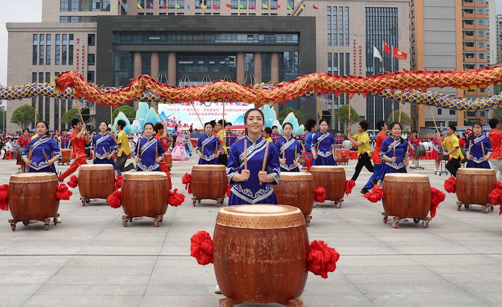 铜鼓声声,山歌飞扬。3月28日,由广西现代职业技术学院、河池市职业教育中心学校承办的2025年“广西三月三·河池嘉年华”文化旅游品牌活动河池市职业教育集团分会场在两校隆重举行。河池市委常委、宣传部部长孔献玲出席活动并宣布活动开幕。河池市政协副主席、广西现代职业技术学院党委书记韦伟松出席活动并致辞。广西现代职业技术学院校长黄绍光出席活动并致欢迎辞。