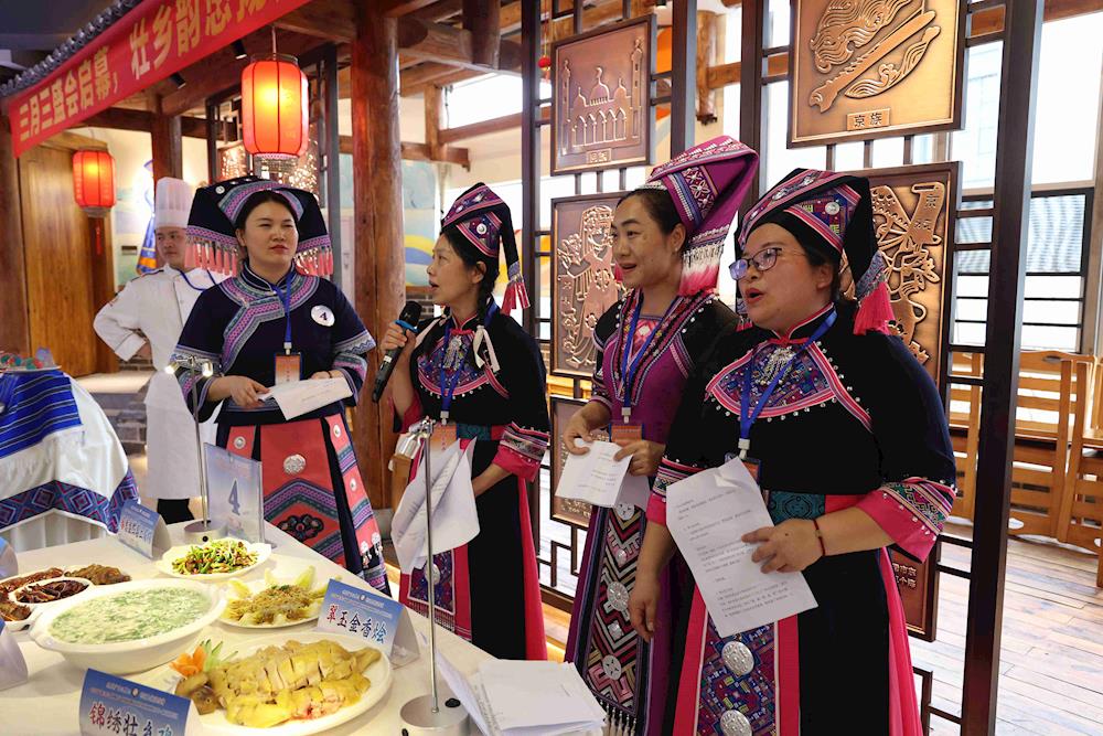 比赛中,选手们各展身手,将河池地区的特色食材和烹饪技法发挥得淋漓尽致。选手们娴熟高超的烹饪技艺,营养美味、形色俱佳、飘香四溢的特色美食,生活气息浓郁、悠扬动听的山歌,不仅让观众味蕾大开,而且给大家带来了美的享受,充分展现了广西传统美食和民族艺术的魅力。