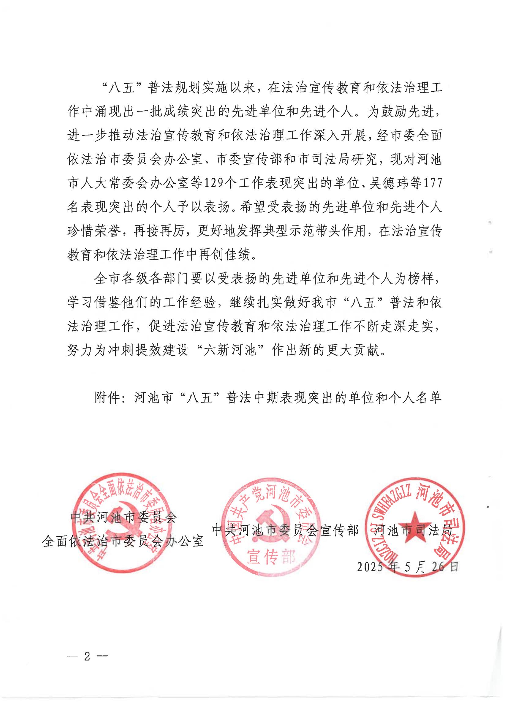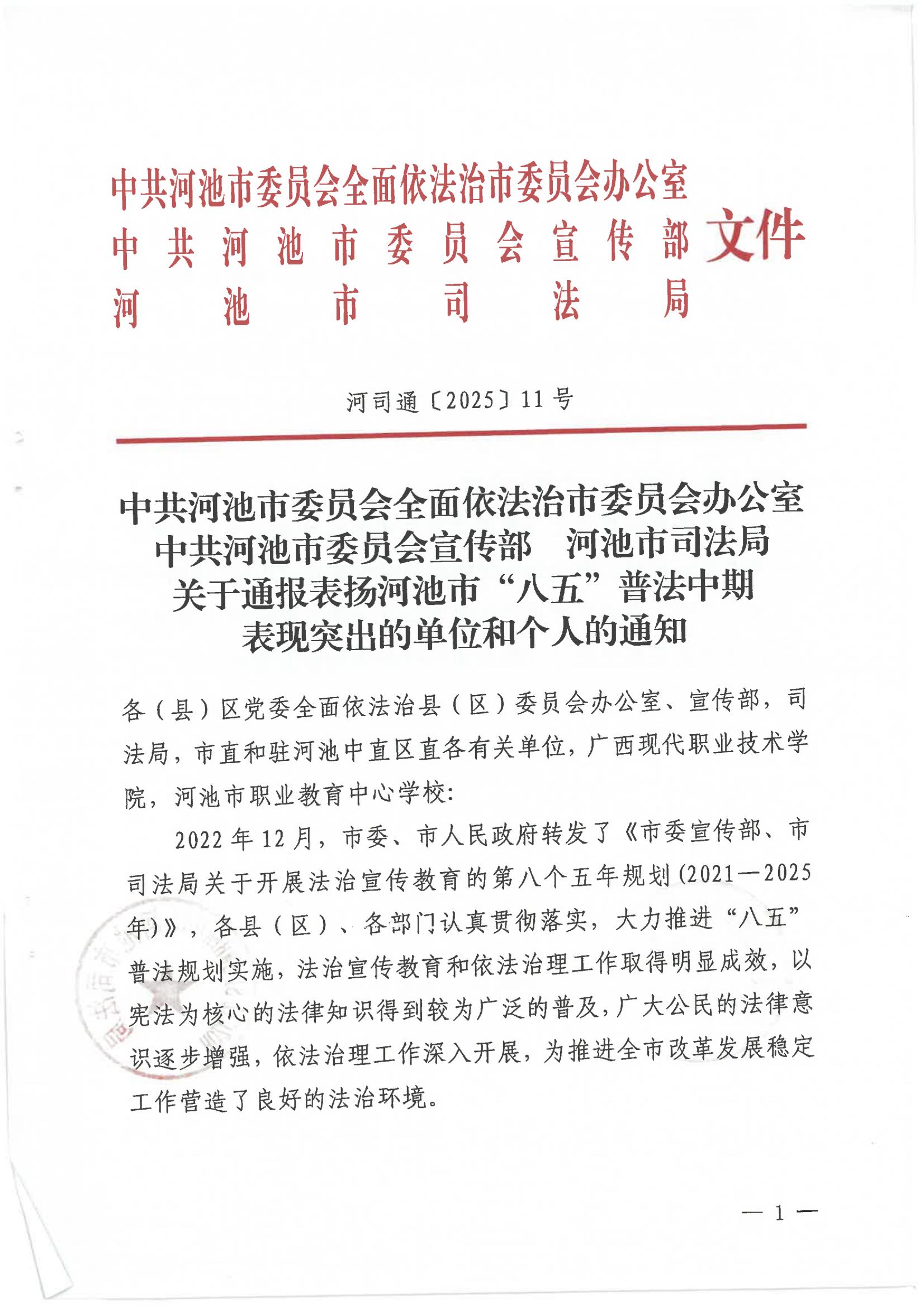 喜讯!广西现代职院荣获河池市“八五”普法中期“先进集体与个人”表彰