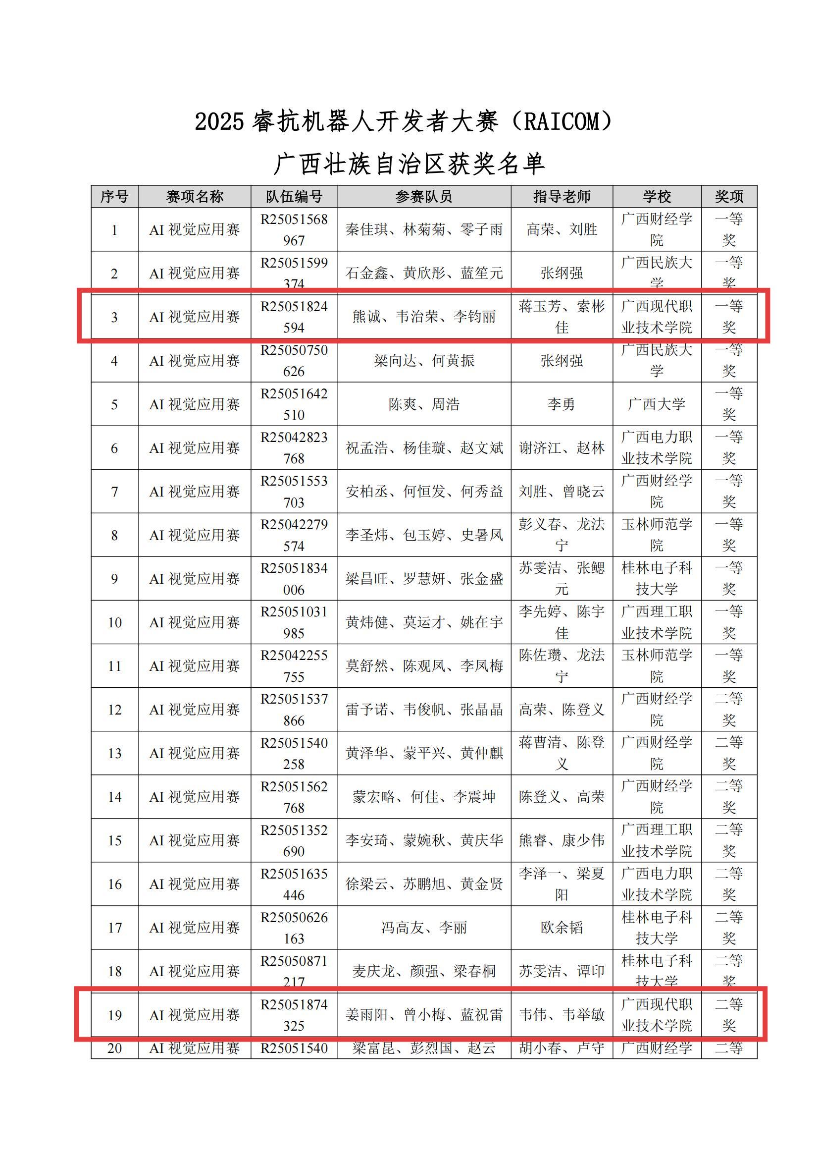 喜报!广西现代职业技术学院在2025睿抗机器人开发者大赛中捷报频传