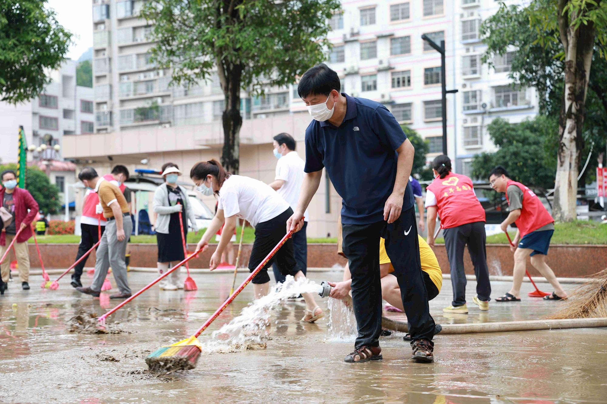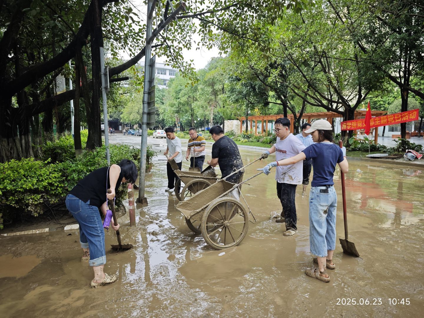 6月22日凌晨3时,积水开始逐渐退去,但灾后的校园一片狼藉。灾后恢复工作是当前学校工作的重中之重。上午8时,学校领导、全体中层正职领导在综合楼一楼前召开紧急会议,专题部署灾后恢复工作的相关事宜。紧接着,学校领导带领广大教职工和学生志愿者一同投入工作,清理淤泥、转移废弃物。以实际行动鼓舞士气,推动恢复工作加速进行。