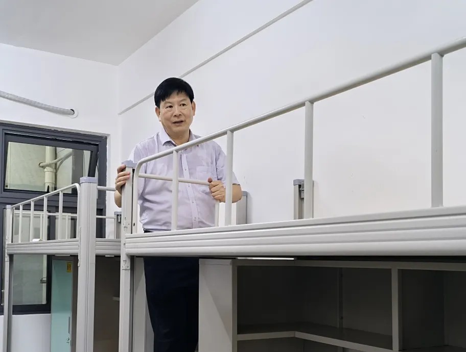 检查现场,校领导一行逐间走进新生宿舍,围绕“让新生住得安心、家长放心”的核心目标逐项细致排查:亲手晃动床铺确认支架稳固,从源头杜绝新生入住后的安全隐患;俯身查看床板平整度,哪怕是微小凸起也不放过,全力保障居住舒适度;逐一测试电路插座通电情况,反复检查开关、灯具是否正常工作,坚决杜绝用电安全风险;同时认真查验门窗锁具开合是否顺畅,细致检查衣柜、桌椅有无损坏松动,甚至对宿舍地面清洁度、空气流通情况都逐一确认——每一个细节的较真,既是校领导对工作的严格要求,更是学校始终把新生需求放在首位、全力保障新生居住安全与生活质量的具体体现。