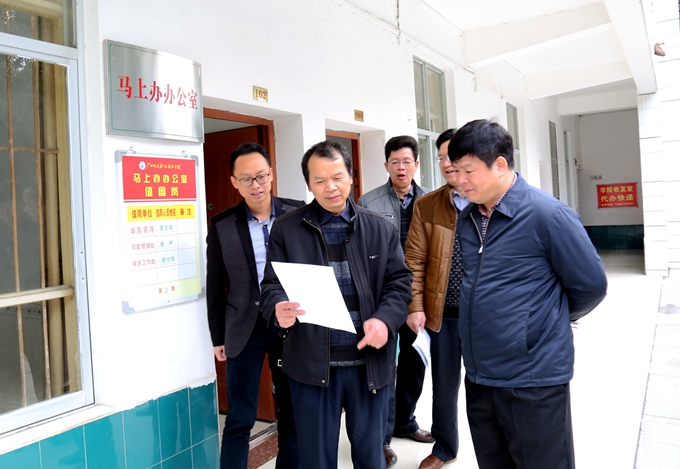 学院党委宣传部讯 3月12日上午,市委副秘书长、学院党委书记韦伟松深入检查“马上办”工作开展情况,并就学生开学初提出的急需马上办理的问题进行督查。教科处等相关负责同志陪同检查。