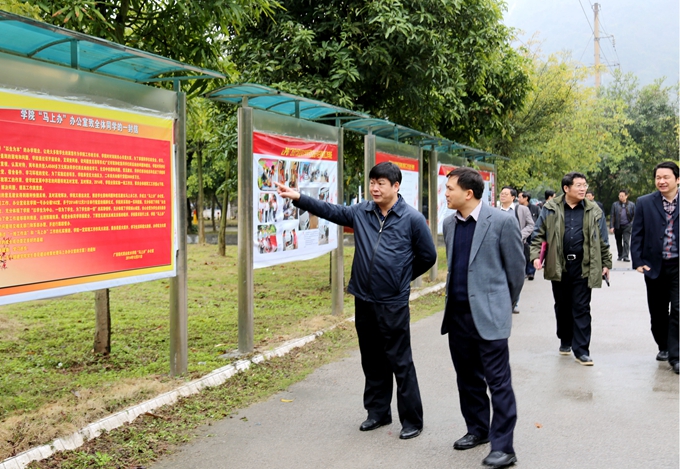 学院党委宣传部讯 3月13日上午,以自治区教育厅师范处处长李勇齐为组长的教育厅2015年春季学期开学初工作巡视检查组一行来到我院,对我院开学工作进行全面细致的专项检查。市委副秘书长、学院党委书记韦伟松,院长黄绍光,市教育局副局长文德生等陪同检查调研。