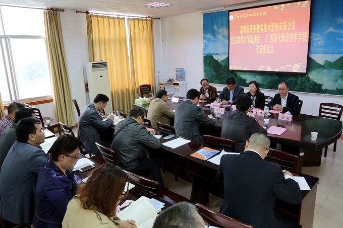 学院党委宣传部讯 3月24日上午,深圳市国泰安信息技术有限公司、北京师范大学出版社受邀来我院洽谈合作相关事宜。市委副秘书长、学院党委书记韦伟松,教务处、学工处、就业办、各系负责人参加会议。座谈会由副院长冯忠伟主持。