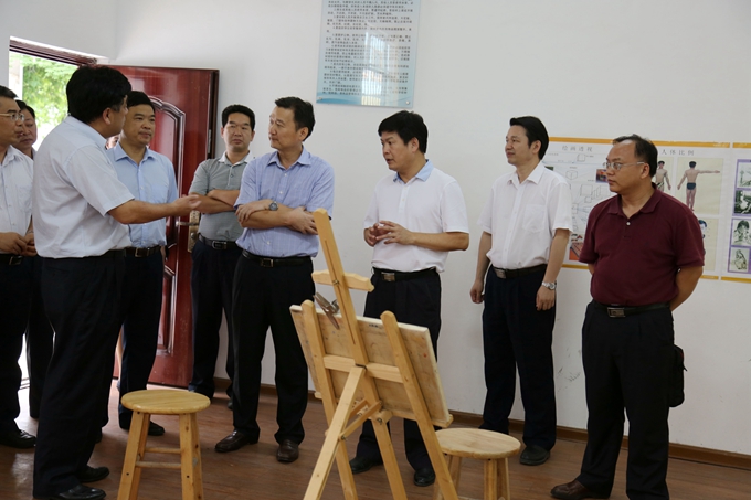 当天下午,李宁波一行参观了学院校园环境、学前实训室、学院农民工培训基地、焊工实训室、电子电力实训室、建筑装饰实训室、冶金实训室、建筑工程实训基地等。考察中,韦伟松书记向李宁波厅长一行详尽汇报了学院的办学情况、办学特色和农民工培训的做法和经验等。