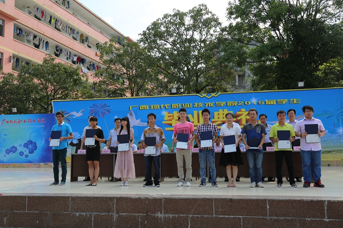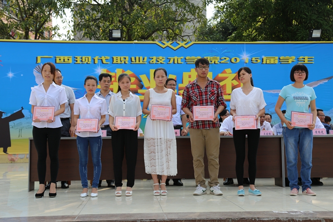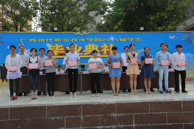 典礼上,冯忠伟首先宣读了《关于表彰2015届自治区级优秀毕业生的决定》,韦伟松、黄绍光等学院领导分别为荣获表彰的优秀毕业生、毕业生代表颁发荣誉证书和毕业证书。