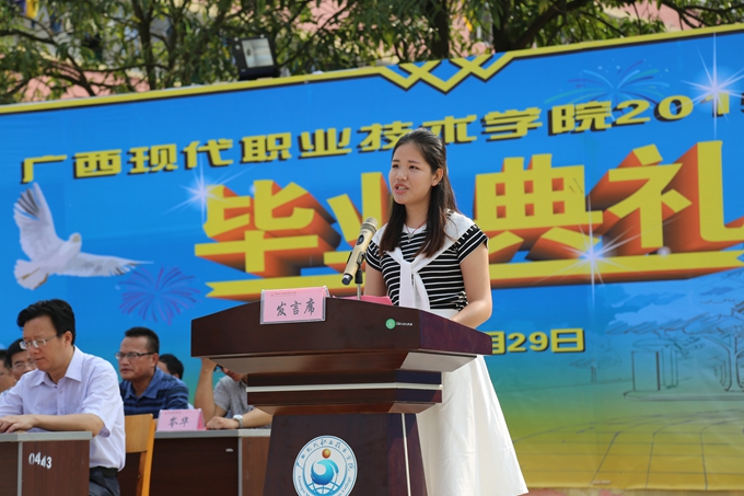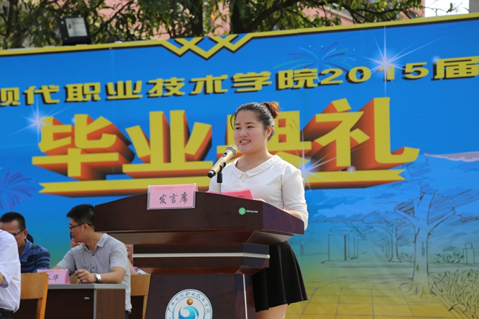 随后,在校生代表表演诗朗诵《再见了,我的大学!》为毕业的学长、学姐们“寄语”。教师代表石林鑫对毕业生表示祝贺与祝福,并希望毕业生们在新的工作岗位上尽职尽责,奋发进取,用实际行动实现“今天我以母校为荣,明天母校以我为荣”的铮铮誓言;在校生代表则希望在学长学姐们踏入另一个领域的时候,依旧能够用实际行动告诉学弟学妹们什么是梦想、责任、担当和成功。毕业生代表以深情的话语向母校表达了最诚挚的谢意和对师长、同学的深深情谊,并表示将在新的人生旅途中求实、奋进,为筑就“中国梦”贡献自己的力量。