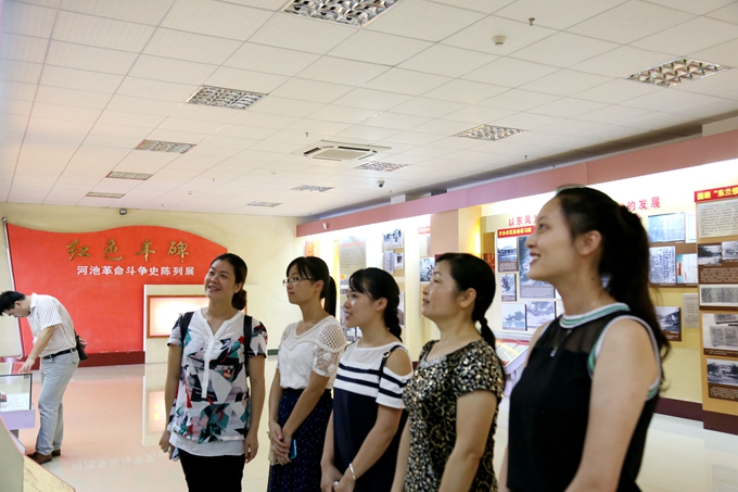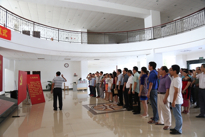 表彰大会结束后,在学院党委副书记、院长黄绍光带领下全体党员及示范校建设骨干队伍成员、信息化建设骨干队伍成员前往河池市革命纪念馆开展重温入党誓词活动,并参观了革命斗争史陈列馆展厅等,自觉接受革命传统教育。