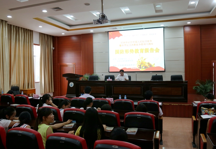 河池市纪念中国人民抗日战争暨世界反法西斯战争胜利70周年国防形势教育报告会在我院隆重举行