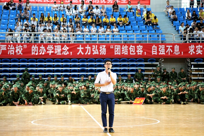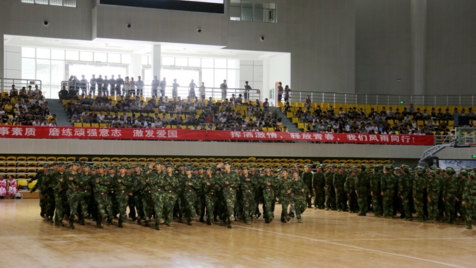 最后,韦伟松书记作军训总结讲话。韦书记强调,通过军训,同学们不仅体验了军营生活,学习了国防知识,增强了国防观念,激发了爱国热情,而且还培养了国家安全意识,坚定了修身立德、成长成才、报效祖国的信心与决心。通过军训,同学们掌握了一定的军事知识和技能,学到了军人服从指挥、令行禁止,纪律严明的好传统;学到了军人顽强拼搏,敢于吃苦,不怕困难,艰苦朴素的好品格;学到了军人不怕牺牲、精忠报国的好思想;也学到了军人团结协作,珍惜荣誉的好作风。通过军训,同学们普遍增强了体质,磨练了意志,锻炼了品质,培养了精神,学会了从思考中确立自我,从追求中获得力量,从计划中把握时间,用纪律来约束自己,用修养来规范行为。韦书记对参训同学们提出三点希望:一是希望同学们在今后的学习生活中,能保持、巩固和发扬在军训中用辛勤的汗水换来的好思想、好作风、好品质,把军训成果转化成刻苦学习和积极生活的动力。二是希望同学们继续发扬脚踏实地、百折不挠、永不服输的精神,敢于面对困难和挫折,勇于接受挑战,按照习近平总书记在中国人民抗日战争暨世界反法西斯战争胜利70周年纪念大会上的讲话要求,进一步增强国防观念,传承和弘扬伟大抗战精神,弘扬爱国主义精神,践行社会主义核心价值观。三是希望同学们继续巩固和发扬集体主义精神,学习上互相帮助、生活中互相关心,珍惜大学时光,秉承学院“厚德强能,奋发有为”的校训精神,努力学习理论知识,锻炼培养实践技能,做一个对国家和社会有用的人。