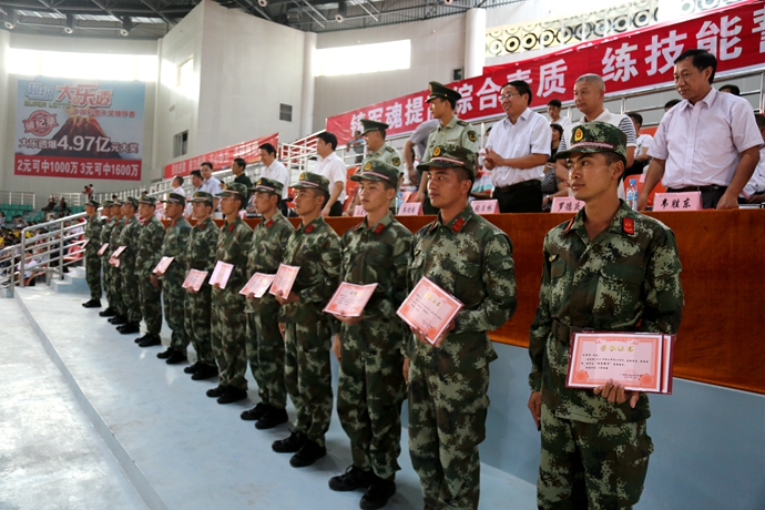 精彩汇报表演后,举行了军训先进集体、先进个人表彰仪式。学工处处长李铃宣读《广西现代职业技术学院关于表彰2015级学生军训优秀集体、优秀个人的决定》,表彰“优秀队列”15支、“优秀学员”25 人、“优秀辅导员、班主任” 8人、“优秀教官”13 人、“优秀班助”63 人,12个排 的12 3 间宿舍获得“内务优秀宿舍”。
