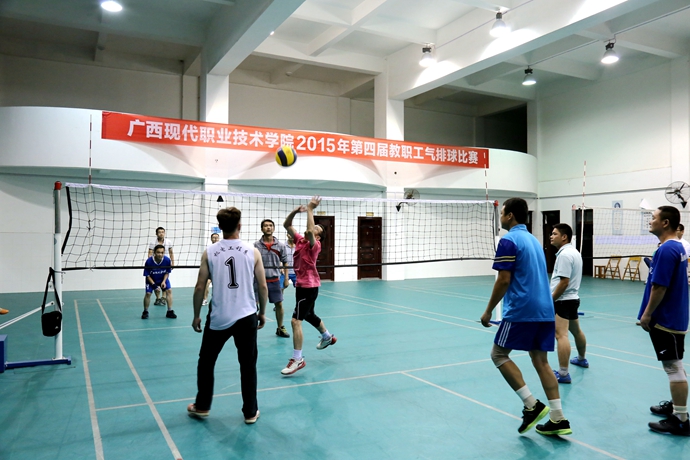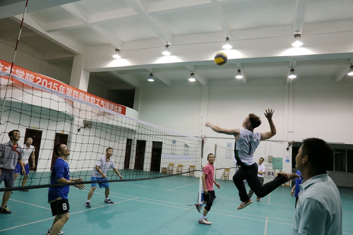 2015年11月11日晚,为期18天的第一个系列比赛活动,第四届教职工气排球比赛在学院室内灯光球场圆满结束。来自全院各部门、各单位的19支男女代表队,经过激烈角逐,最终,机关一组2队,电子系、社科部、驾校联队分别获得男子组、女子组一等奖,经管系队,资源系、图书馆、培训部联队,教育系1队,机关二组队分别获得男女组二等奖,建信系、计网中心联队(男子),电子系、社科部、驾校联队,机关二组1队,建信系、计网中心联队(女子),机关一组队,教育系2队分别获得男女组三等奖。学院党委书记韦伟松、院长黄绍光等院领导还分别加入相关代表队参加比赛,并于决赛当晚为获奖代表队颁奖。