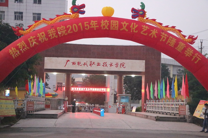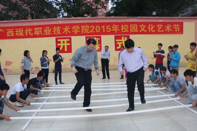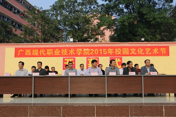 11月23日下午,学院2015年校园文化艺术节在学院舞台隆重开幕。学院党委书记韦伟松在开幕式上宣布广西现代职业技术学院2015年校园文化艺术节开幕。学院院长黄绍光致开幕词,开幕式由团委书记李媛媛主持。纪委书记冉景峰、副院长韦胜东、工会主席覃志航、院长助理韦建军、杨奎、覃孜及学院各部门负责人、各系、河池职教中心分管学生的领导参加开幕式。