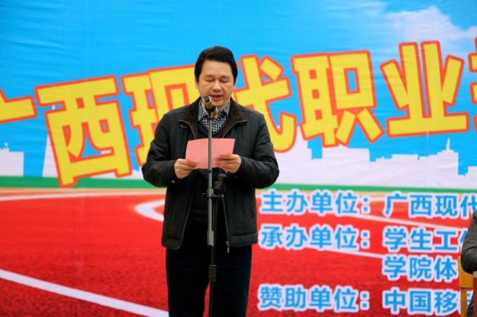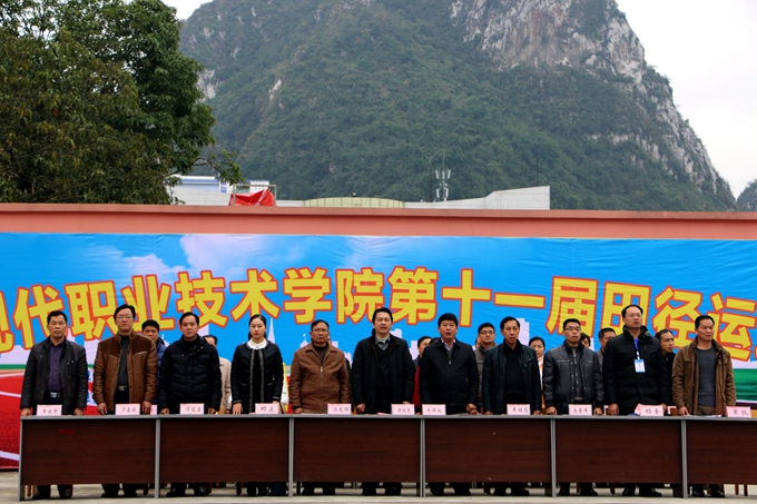党委宣传部讯 12月9日下午,学院第十一届田径运动会在塑胶运动场隆重开幕。学院党委书记韦伟松出席开幕式并宣布开幕。学院院长黄绍光在开幕上致辞。纪委书记冉景峰,副院长韦胜东,工会主席覃志航,院长助理韦建军、杨奎、覃孜,以及各部门负责人,各系、河池职教中心分管学生的领导、赞助单位中国移动通信集团广西有限公司河池市金城江区分公司部门负责人参加开幕式。开幕式由团委书记李媛媛主持。