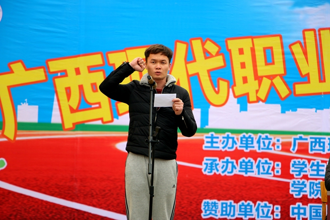 开幕式上,14营销2班梁剑盛同学以及体育部罗皓老师还分别代表运动员、裁判员进行宣誓。