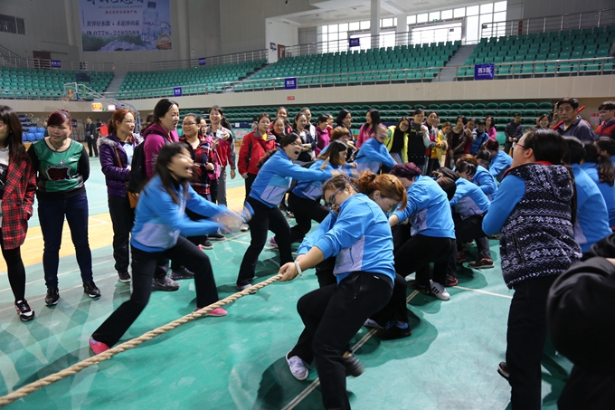 院工会、党委宣传部讯 2016年3月4日至6日,河池市妇联、总工会、文广新体局在金城江联合举办河池市市直女职工运动会,学院工会组织我院教工女子代表队参加了本次运动会气排球、乒乓球、背篓接绣球、拔河等全部四项比赛。经过运动员顽强拼搏,我院代表队再创佳绩,成绩喜人,取得了背篓接绣球比赛第二名、乒乓球团体比赛第三名的好成绩。