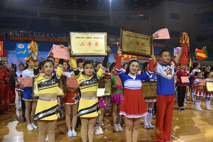 党委宣传部讯 3月26日,由河池市文化广电新闻出版体育局主办、市健身操协会承办、广西现代职业技术学院协办的河池市首届“如新杯”啦啦操大赛在河池市体育馆隆重举行。我院师生分别组成“广西现代职业技术学院小辣椒啦啦操队”和“广西现代职业技术学院魅力小妖啦啦操队”两个队参加比赛,并分别荣获二等奖的好成绩。