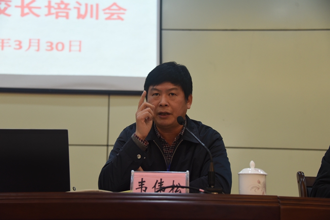 又讯 3月30日上午,全市初级中学校长培训会在河池市职业教育中心学校厚德厅。河池市教育局党组书记、局长韦茂才,学院党委书记韦伟松,学院院长黄绍光,市教育局副局长韦联克,河池市职业教育中心学校党委书记黄丹峻等领导出席培训会。