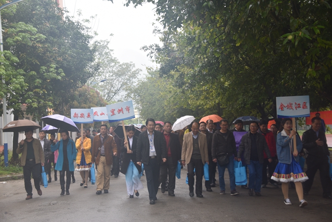 学院党委宣传部讯 3月30日上午,河池市各县(市、区)中学校长考察团到我院参观考察。学院院长黄绍光,党委副书记、副院长霍江华,纪委书记冉景峰,副院长韦胜东、冯忠伟,工会主席覃志航,院长助理韦建军、卢森焕、杨奎以及各部门负责人陪同参观。