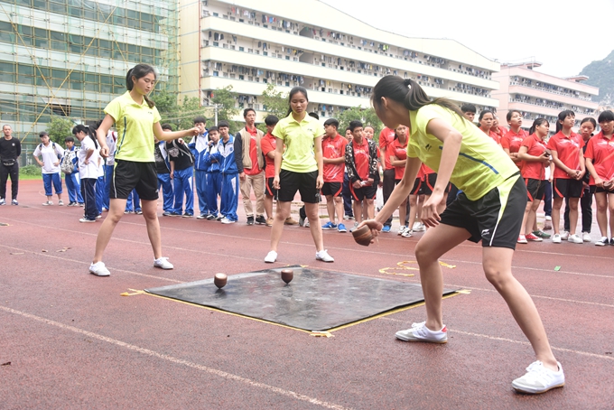 本届运动会共设有投绣球、板鞋和陀螺3个竞赛项目,来自金城江城区各高中(大中专)学校近300名选手参加了本次运动会,同场竞技、一展风采。我院学生代表队在比赛中发挥出色,分别获得男、女子组团体总分第一名的好成绩。