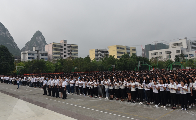 本站讯(宣传部 莫青青) 5月9日上午7时,我院在学院文体广场举行社会主义核心价值观培育暨“品读文学经典﹒培育爱国情怀”晨读活动启动仪式。学院党委书记韦伟松、学院院长黄绍光、市职业教育中心学校党委书记黄丹峻,副院长韦胜东、纪委书记冉景峰、副院长冯忠伟出席了启动仪式。全体教职工及在校学生参加仪式。仪式由副院长冯忠伟主持。