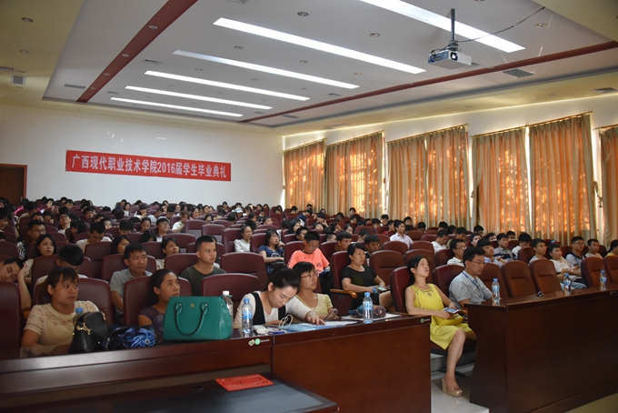 6月29日下午,我院2016届学生毕业典礼在学院第一第二学术报告厅隆重举行。学院院长黄绍光,副院长韦胜东等院领导出席毕业典礼,并为毕业生和优秀毕业生颁发毕业证书和荣誉证书。毕业典礼由副院长韦胜东主持。各系、各部门负责人,毕业班班主任、辅导员、教师代表、部分毕业生代表共1400多人参加了毕业典礼。