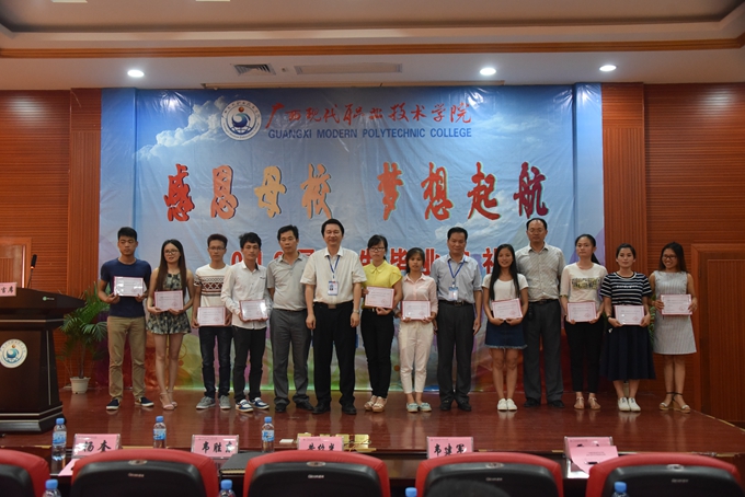 典礼上,韦胜东副院长宣读了2016年自治区、学院优秀毕业生表彰文件,黄绍光等学院领导分别为我院荣获自治区及学院表彰的优秀毕业生颁发荣誉证书、为毕业生代表颁发毕业证书。