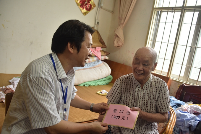 学院领导“七一”看望慰问退休老党员 来源: 发布时间:2016-07-02 17:13:10 浏览次数: 次 【字体:小 大】 学院领导“七一”看望慰问退休老党员 本站讯(宣传部 黄思涵) 为庆祝中国共产党成立95周年,表达对老党员的关心和重视,7月1日建党节,学院党委书记韦伟松,院长黄绍光看望慰问了学院的退休老党员。 在慰问活动中,韦伟松、黄绍光与退休党员亲切交谈,诚挚询问老同志的生活和身体健康状况,同时送上了慰问金。退休老党员对学院一直以来的深切关怀表示衷心感谢。 【打印正文】 相关信息