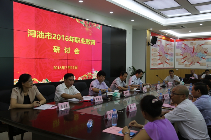 又讯 7月15日下午,河池市职业教育研讨会第二阶段会议在市委党校会议厅举行。自治区专家、市直相关部门、各县(市、区)教育局、职业院校和企业的领导及代表参加会议。学院党委书记、市职业教育中心学校校长韦伟松,学院院长黄绍光、市职业教育中心学校党委书记黄丹峻等两校领导出席会议。我院及市职业教育中心学校中层以上干部参加会议。会议由市教育局副局长韦联克主持。