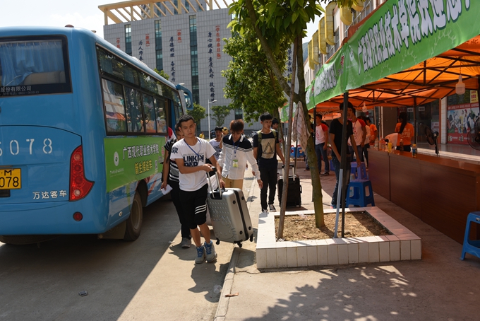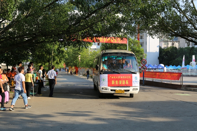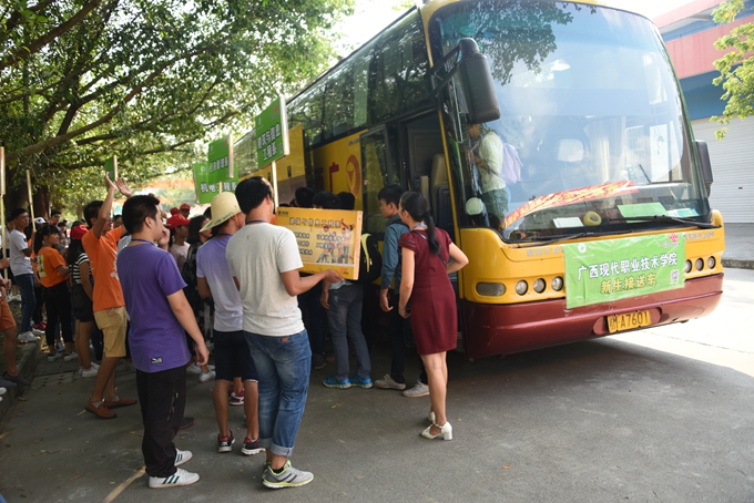 本站讯(宣传部 莫青青) 新学期、新征程、新未来,青春列车在广西现代职业技术学院再次启程。2016级新生的到来,使得秋意渐浓的校园焕发出更多勃勃生机与活力。为了做好今年的新生接待工作,学院领导多次研究讨论新生接待工作方案,学院党委书记韦伟松、院长黄绍光亲自组织部署和指挥协调,全程跟踪检查、指导各项接待工作,及时解决存在问题。全院师生员工更用心、更用情、更用力地投入到新生接待服务工作中,为的就是让每一位新生和家长满意。