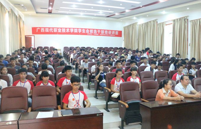 河池市清正社会工作服务中心主任黄福东为学生候选干部开展培训讲座,针对学生干部的活动组织策划能力、社交礼仪、心理健康方面进行讲解。他还表示,大学生是国家将来的栋梁之才,服务中心会竭尽所能,将社会工作理念与方法运用到学校学生工作中,助力学校师生的共同发展和进步。