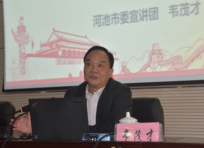 韦茂才从十八届六中全会的意义、十八届六中全会的重大亮点、新形势下加强和规范党内的关键问题、强化党内监督以及如何为全面从严治党作贡献进行专题讲解。宣讲内容丰富全面、论述精辟,对全体教职工全面、准确、深入地领会全会精神具有指导意义。
