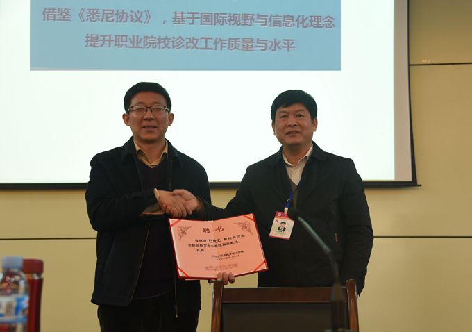 会上,巴世光教授作了题为《借鉴〈悉尼协议〉,基于国际视野与信息化理念提升职业院校诊改工作质量与水平》的专题培训讲座。巴教授解读了教育部关于教学质量诊断与改进的相关文件,分析了中高职学校教学工作诊断项目、职业院校内部质量保证体系诊断项目,以及《悉尼协议》与高职院校内部质量保证体系诊断项目的对照等;并结合实例和自身工作经验详细阐述了职业院校内部保证体系的建立和运作、职业院校诊断、改进与提升的系统设计,以及教学质量与管理的信息化建设等。巴教授生动幽默的语言、丰富的教育教学经验获得与会人员阵阵掌声。