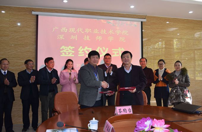 学院党委书记韦伟松代表学院与深圳技师学院签订了“校校合作”协议。