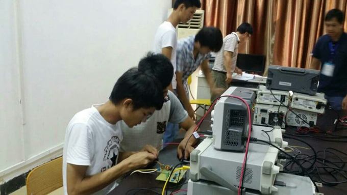 在学院领导的高度重视和系领导班子积极推动下,电子系3月份就积极组织学生参加培训选拔并安排相应的老师负责,针对竞赛要求制定一系列的培训计划并加强平常的训练。通过为电子协会开放实训室,开展第二实训课堂,聘请校外专家教授做专题报告等方式,不断提高同学们的技术技能和创新能力。通过第一阶段的严格选拔,最终有四组进入第二阶段的重点培训。为了能取得更好成绩,在为期20多天的强化训练中,系主要领导亲自下实训室指导,专业老师积极参与,同学们努力进取、开拓创新、不断突破自我。通过高强度的训练,学生技能得到很大的提升,为赢得比赛的胜利打下坚实基础。在决赛的四天三夜中,同学们夜以继日,通宵奋战,攻克一个个技术难关,在规定时间内完成参赛作品,取得了优异的成绩。
