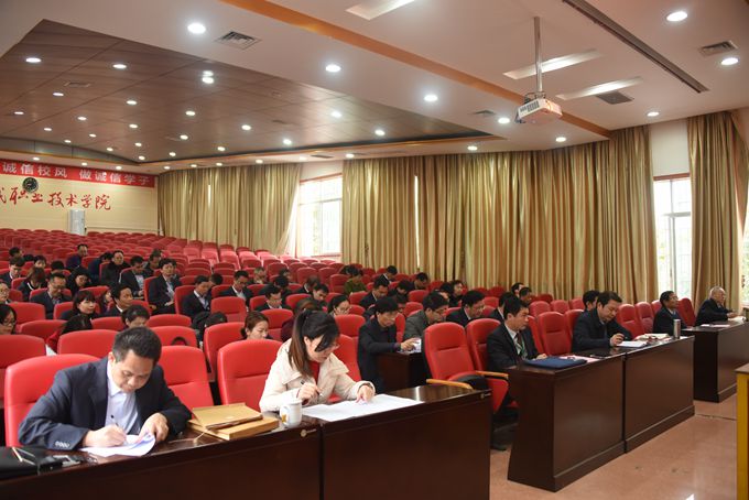 2月27日,我院在第二学术报告厅召开2016年度领导班子考核会,学院党委书记韦伟松、院长黄绍光、党委副书记、副院长霍江华、副院长韦胜东、副院长冯忠伟、学院工会主席覃志航以及学院全体中层参加了此次会议。会议由学院党委书记韦伟松主持,河池市委组织部覃艳阳到会指导。