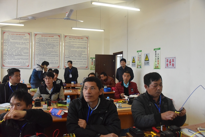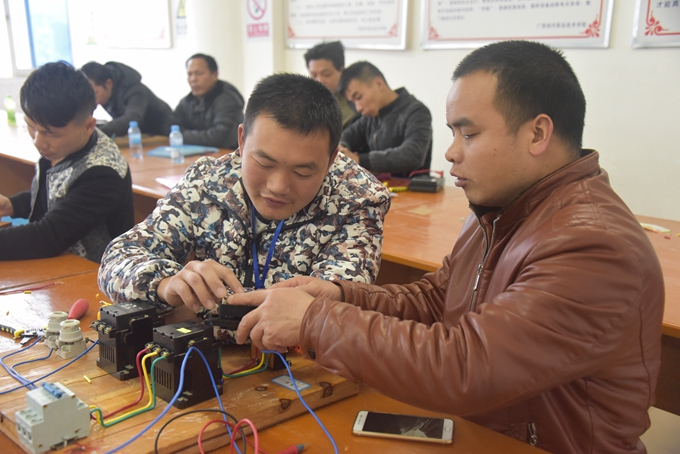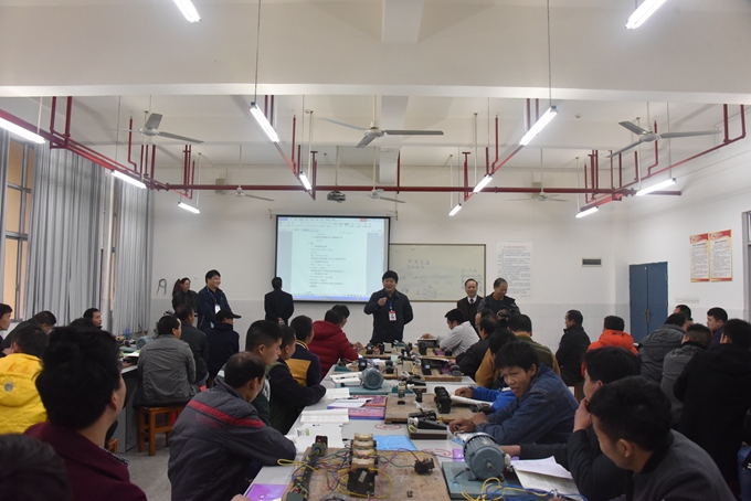 为确保“党建+教育扶贫”培训就业示范班培训工作顺利开展,3月9日下午,学院党委书记韦伟松带领培训部、相关系部负责人到电工、焊工、建筑、育婴培训班现场考察培训工作开展情况。
