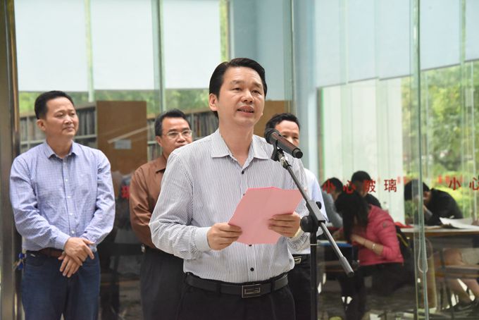 院长黄绍光在仪式上讲话。他指出,河池市首家24小时图书馆在我院开馆,成为了我院一道亮丽的风景,为广大师生和社区群众提供了良好的阅读条件;在读书月活动中,广大师生要充分认识读书的重要性,掌握正确的读书原则和方法,把读书和做人结合起来,在读书的过程中不断完善自己的人格和品德。他希望广大师生携起手来,加强读书氛围的营造,把阅读融入日常生活中,形成自觉读书的生活习惯和浓厚氛围。