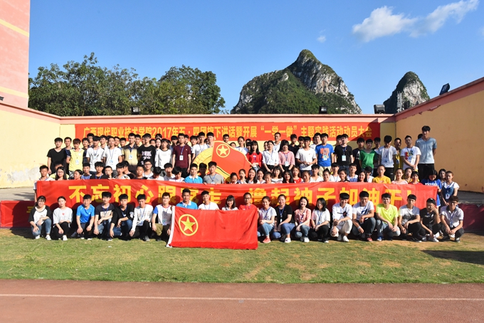 为壮大我院共青团员队伍,加强广大青年团员的思想政治教育,树立爱国爱党爱人民崇高的远大理想,5月4日下午,学院团委在学院田径场舞台举行2017年广西现代职业技术学院五·四团旗下的讲话暨开展“一学一做”主题实践活动动员大会。各系500名新老团员参加仪式。