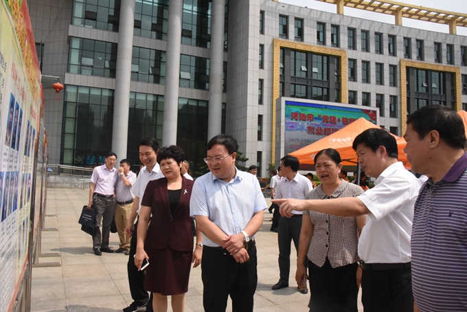当天,市委副书记、统战部部长唐标文,市委常委、组织部部长马南萍,市人民政府党组成员、副市长李凤云等与会领导还现场参观了河池市“党建+教育扶贫”就业招聘会,现场了解企业招聘和学员应聘情况。