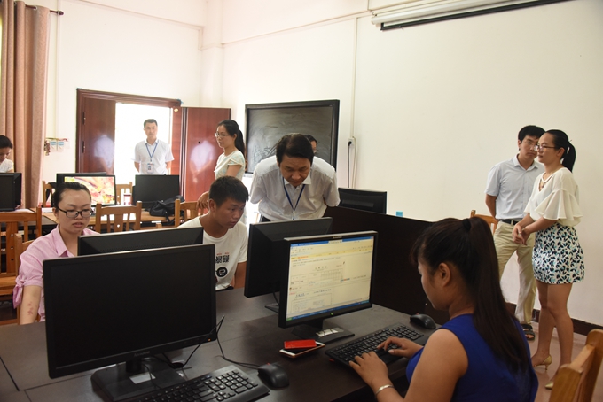6月13日下午, 我院组织开展了2016-2017年度下学期学生技能抽查活动。学院院长黄绍光,学院党委副书记、副院长霍江华,副院长冯忠伟出席现场抽查活动,全体中层干部参加现场抽查活动。副院长冯忠伟进行网络抽查。