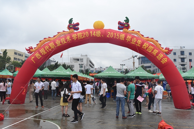 6月27日上午,我院隆重举行2014级、2015级毕业生校园双选会。副市长顾楠洲出席双选会启动仪式。学院党委书记韦伟松、共青团河池市委、市人社局领导以及企业代表等参加启动仪式。