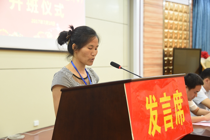会上,育婴员班安马乡学员甘昌姐作学员代表发言。