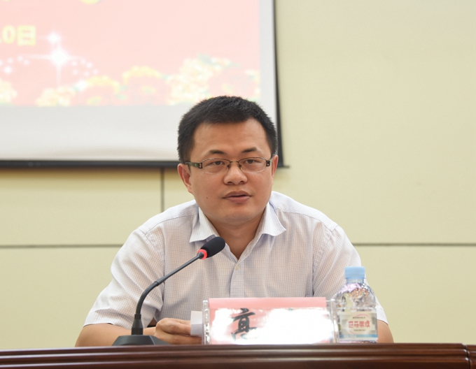 中共宜州市委常委、组织部部长高鑫讲话。高鑫指出,此次“党建+教育扶贫”就业培训的目的不光要就业,还要实现优质就业。学员们要珍惜机会、要争气、要勤学好问、要团结向上、要遵守纪律,通过参加培训,真正掌握一技之长。