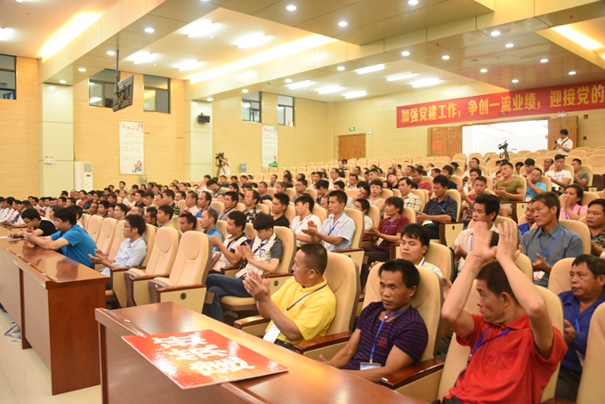 学院院长黄绍光在会上致辞并讲话。黄绍光介绍了河池市“党建+教育扶贫”第一期、第二期就业培训示范班的基本情况,以及我院和市职业教育中心学校办学情况、办学成果等。黄绍光希望学员们明确培训意义,思想认识到位,做到学以致用;在学习中充分展现良好形象,真正掌握知识和技能,争取早日脱贫致富。