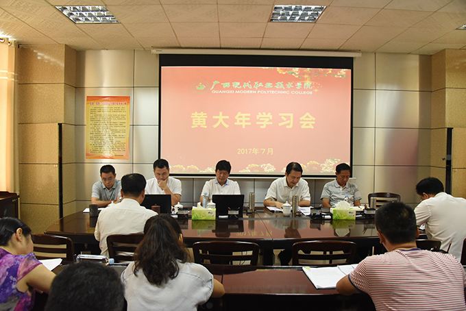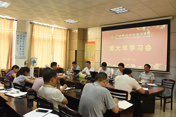 学院党委书记韦伟松在会议上,号召以黄大年同志为榜样,学习他心有大我、至诚报国的爱国情怀,学习他教书育人、敢为人先的敬业精神,学习他淡泊名利、甘于奉献的高尚情操。韦书记强调,我们要认真贯彻习近平总书记重要指示,精心部署、认真组织,迅速掀起学习黄大年同志的热潮,用黄大年同志的感人事迹和崇高精神教育广大党员干部和师生员工。他还提出几点要求:第一,深入挖掘黄大年同志事迹的丰富精神内涵,充分认识向黄大年同志学习的重要意义;第二,要把开展向黄大年同志学习活动,同深入学习习近平总书记系列重要讲话精神结合起来,将立德树人贯穿教育教学全过程;第三,要把开展向黄大年同志学习活动,同深入贯彻落实全国全区高校思想政治工作会议精神、培育和践行社会主义核心价值观紧密结合起来,弘扬正能量;第四,要将学习黄大年同志先进事迹作为“两学一做”学习教育的重要内容,大力宣传先进人物事迹,营造良好氛围,抓好组织落实,全体师生撸起袖子加油干,立足岗位做贡献,为实现学院“123456”发展思路贡献自己的智慧和全部力量,以优异成绩迎接党的十九大胜利召开。