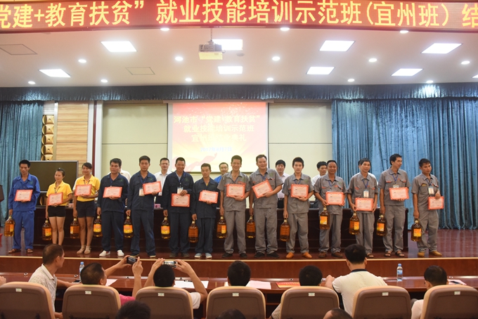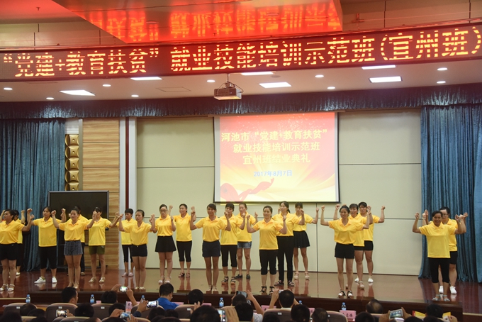 我院参加河池市“党建+教育扶贫”就业技能培训示范班(宜州班)结业典礼