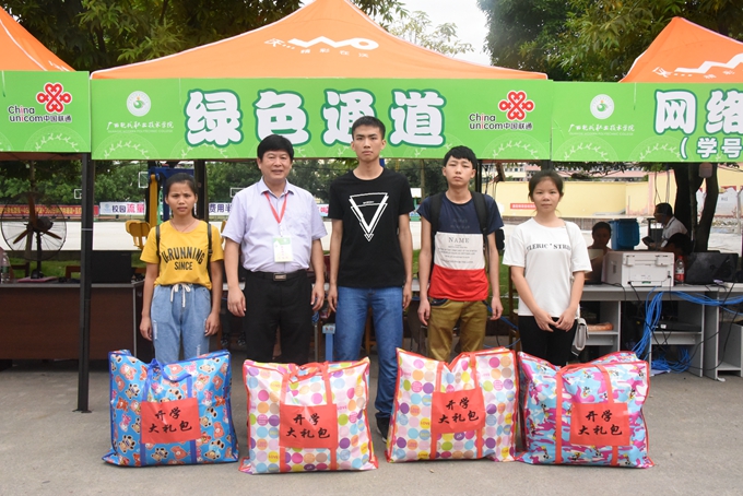 院长黄绍光为新生发放爱心助学大礼包